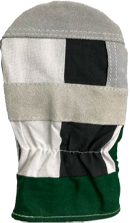 Rękawice jednopalcowe z dwoiny bydlęcej po stronie chwytnej ze wzmocnieniem szwów kciuka i tkaniny po stronie grzbietowej, wzmocnionej na linii kości śródręcza oraz na czubku palców i kciuka dwoiną bydlęcą. W części chwytnej wkład z bawełnianej włókniny przeszywanej.