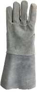 Rękawice z dwoiny bydlęcej ze wzmocnieniem szwów kciuka i dwóch palców w części chwytnej.